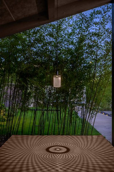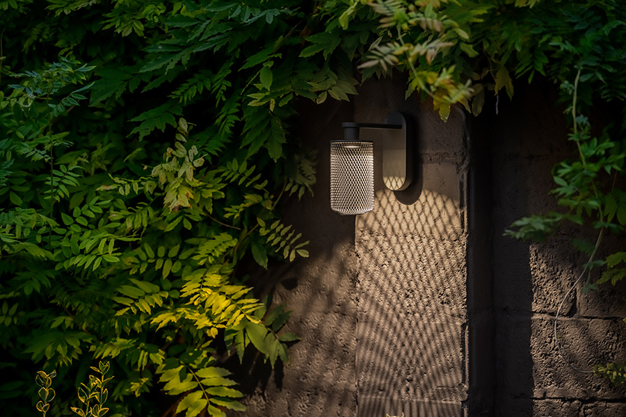 Careful workmanship and highest-quality stainless steel ensure the head is perforated precisely and flawlessly. It projects its silhouette onto the surrounding surfaces, changing shape all the time. Astral Trellis brings about immersive outdoor atmospheres. Light engraves its signature made of small geometries.